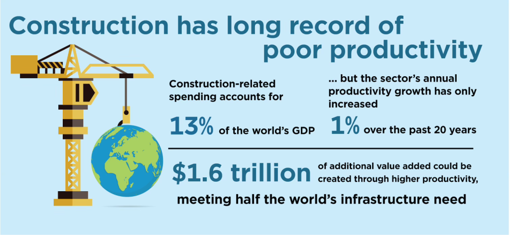 According to a McKinsey Report from February 2017, the construction sector is among the least digitised sectors globally. The low level of digitalisation and process automation has resulted in low level of productivity. In order to meet these challenges, the construction industry needs to increase its efficiency levels and streamline its supply chains and life cycle processes. Moving towards digitising these activities and processes is a first required step to create interoperability and transparency.